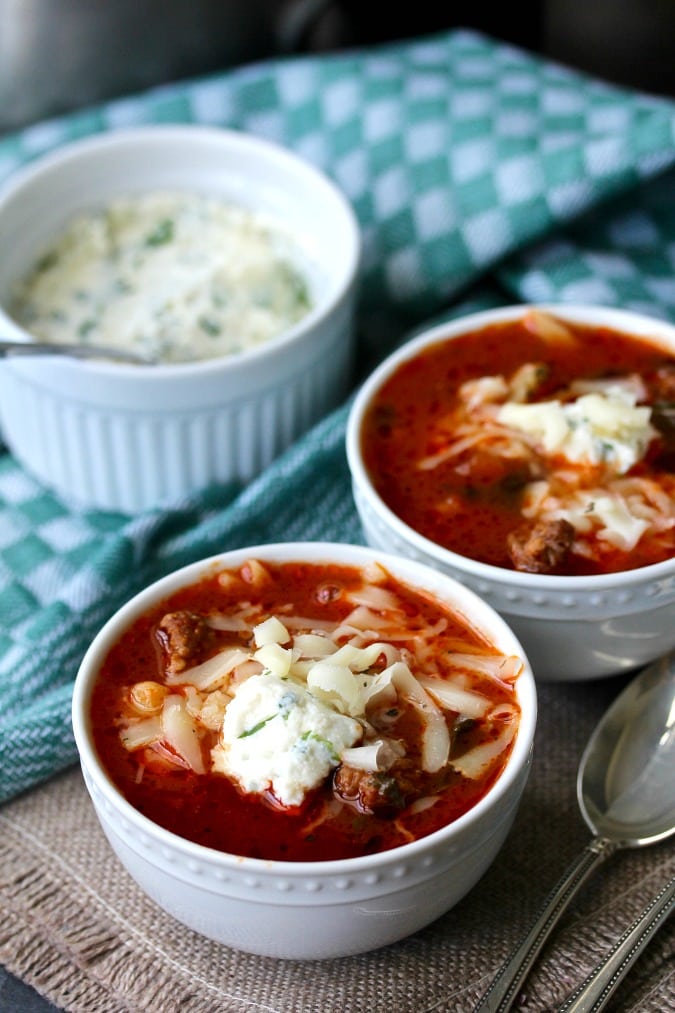 - Slow Cooker Lasagna Soup – My family loves lasagna, but I hate making it! This soup recipe from Karen’s Kitchen Stories is the perfect compromise.