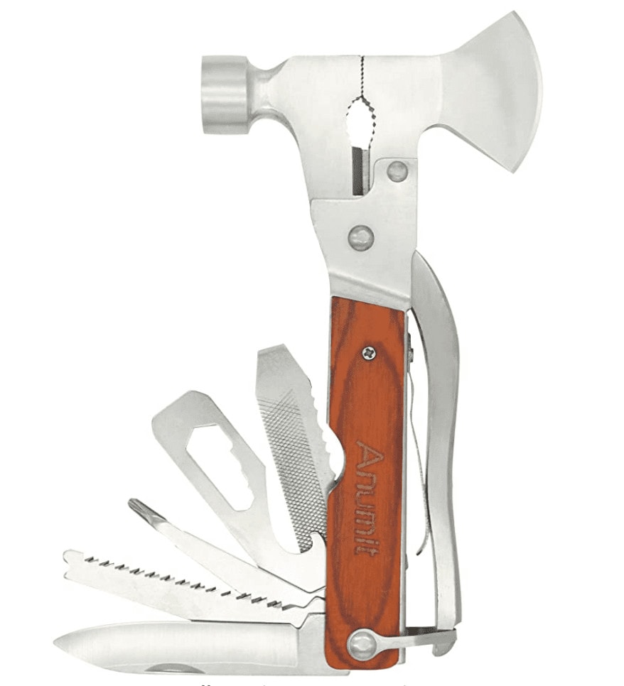 8. Multi tool – Need something to smash those geodes? This multi-tool is a great starter item for handy  teens and tweens and includes and axe, hammer, pliers, and more.
