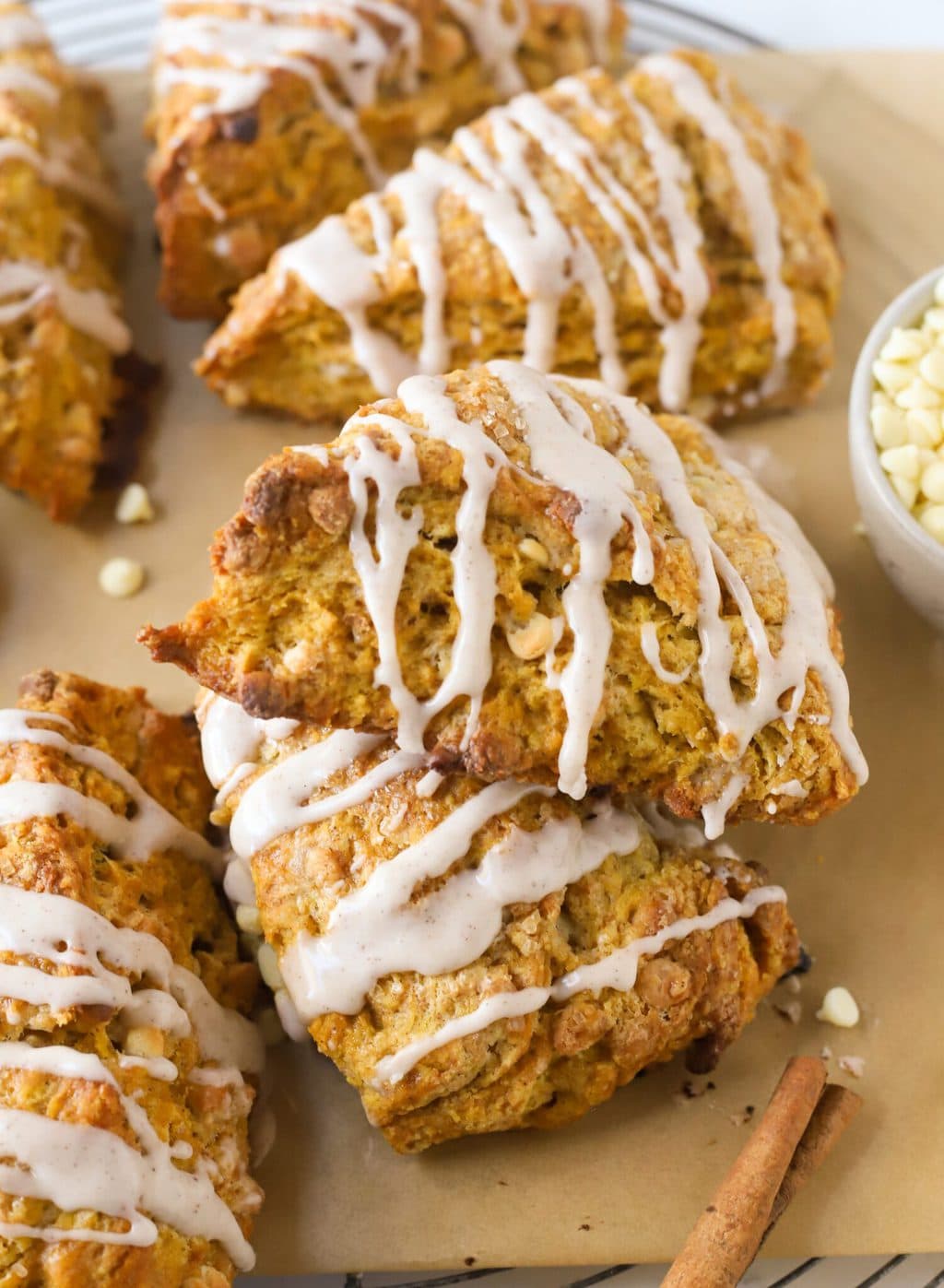 These pumpkin scones are full of wonderful spices, rich in pumpkin flavor, and super easy to make. They can be mixed up in about 15 minutes.![]()