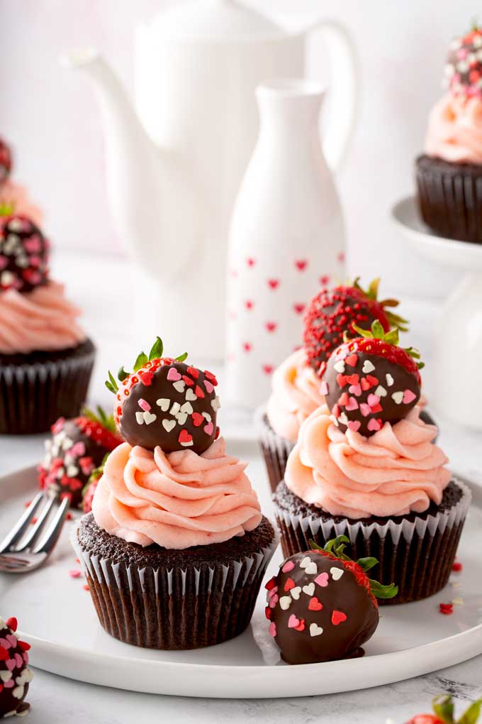 These Chocolate Covered Strawberry Cupcakes are made with the most rich and fudgy chocolate cupcake, the best fresh strawberry frosting and topped with a chocolate covered strawberry.
