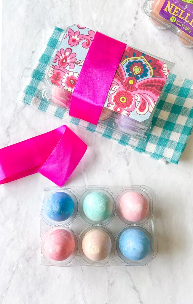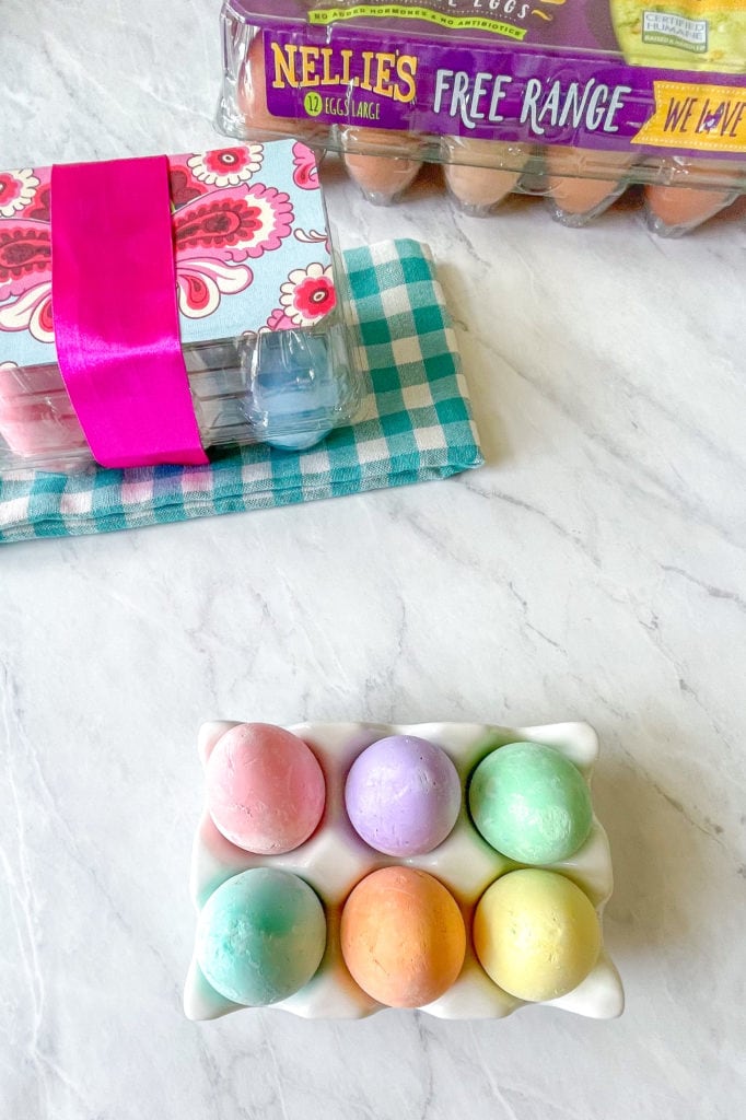 I love using egg shells or Easter egg molds for the project, and then using a clean Nellie’s Free Range Egg container to store the chalk. Their egg cartons are are made from 100% recycled plastic including recycled soda bottles. The cartons can be recycled again through your local program, or through their Take Back program.