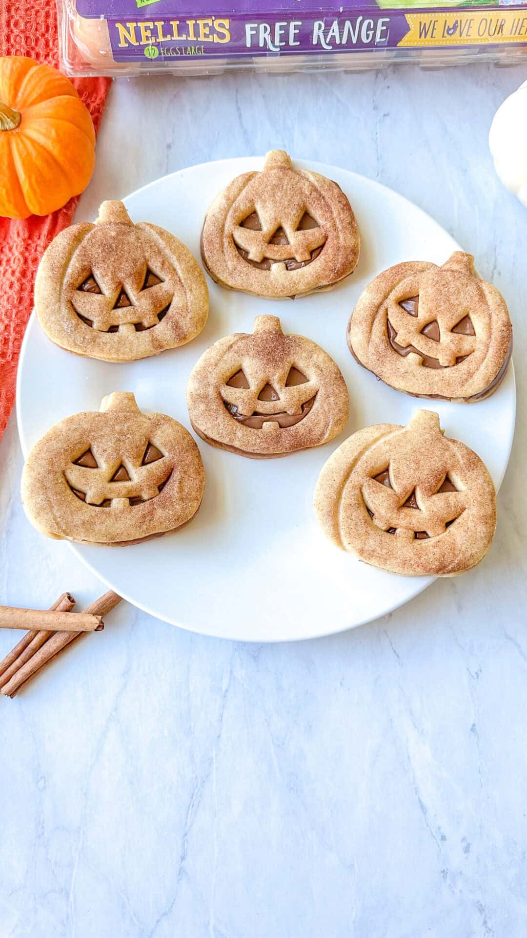 Nutella Stuffed Jack-O-Lantern Snickerdoodle Cookies